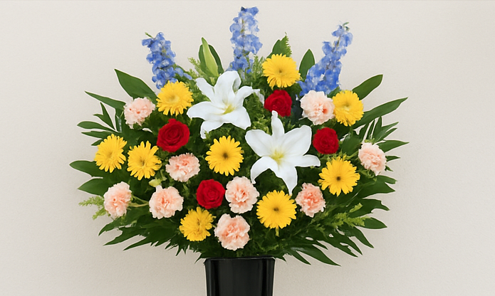 ・お通夜・告別式などで祭壇まわりに飾るスタンド花です。